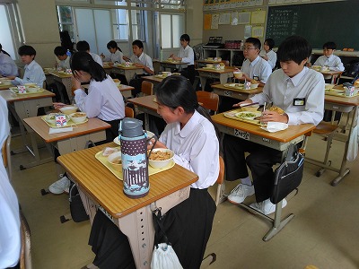 愛媛県の朝食摂取率が全国でワースト2というアンケートの結果が出たことから、啓発セミナーを開きました。本校教員が、朝食と運動能力や学力との関係についてグラフを映しながら説明し、さらに自分の息子に関する実体験を話しました。その後、大塚製薬の方に来ていただき、朝食の大切さについて話していただきました。朝食と運動や学力には密接な関係があり、朝食を取った方がパフォーマンスがはるかに上がるということがよく分かったと思います。大塚製薬の方からは朝食にどのようなメニューを取ればいいかなど、細かいことまで話していただきました。
