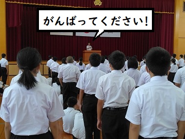 そしてその後は、今回も応援団が登場。先輩たちが全力で校歌を歌い激励してくれました。予定では全員で校歌を歌う予定でしたが、インフルエンザに注意して応援団だけの歌唱になりました。