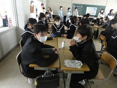 今日は、給食時の放送で宇和中生に別れの挨拶をしました。